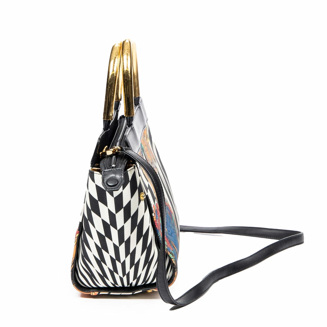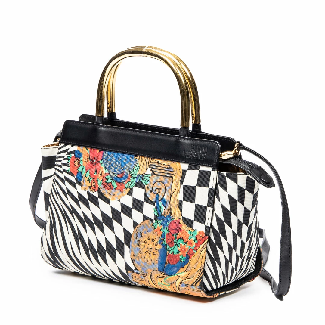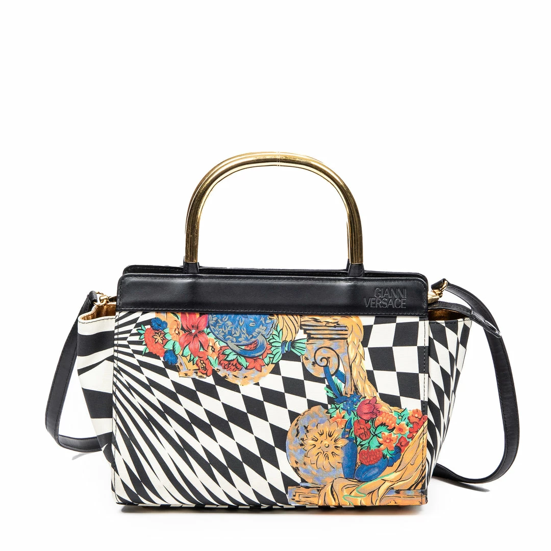Versace Shoulder Bag in Ivory/Black Printed Coated Canvas and N/A hardware. Dimensions – 26*20*10cm. Serial number – N/A. Inclusions – None.
