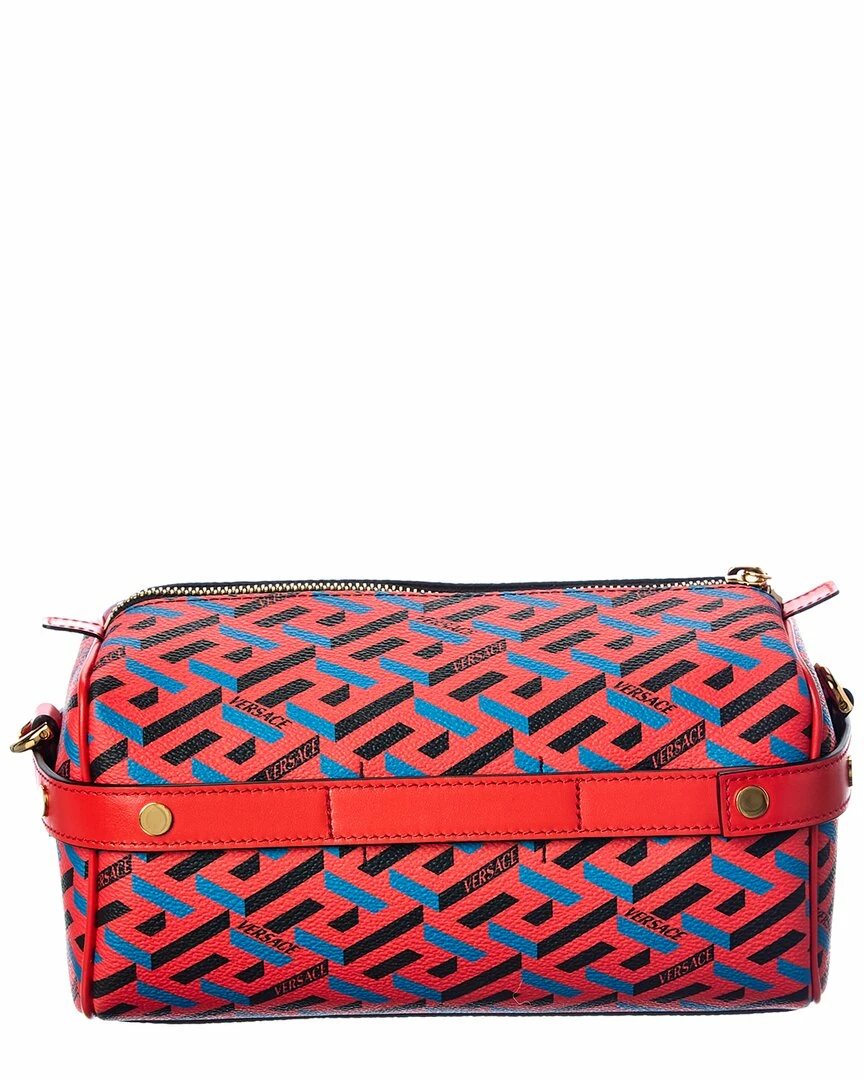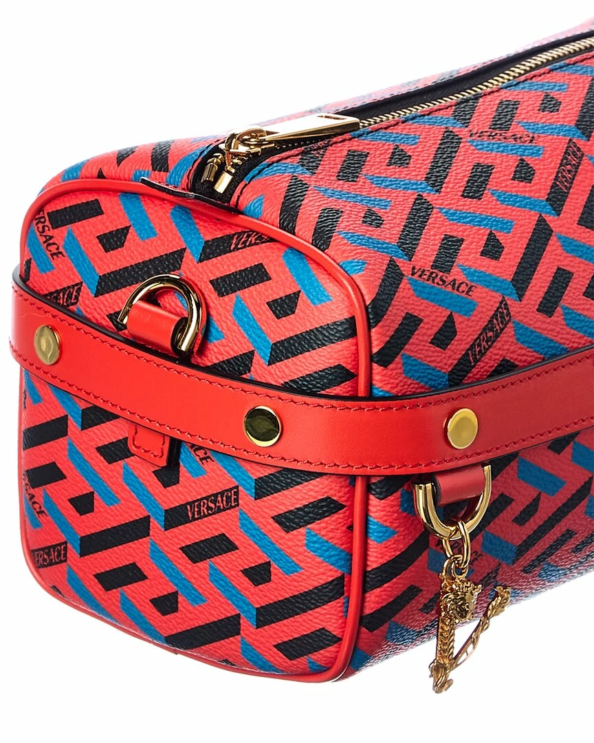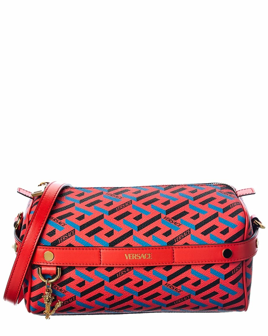 - Greca Coated Canvas & Leather Shoulder Bag In Red Printed Coated Canvas And Leather And Gold-Tone Hardware With Logo Charms