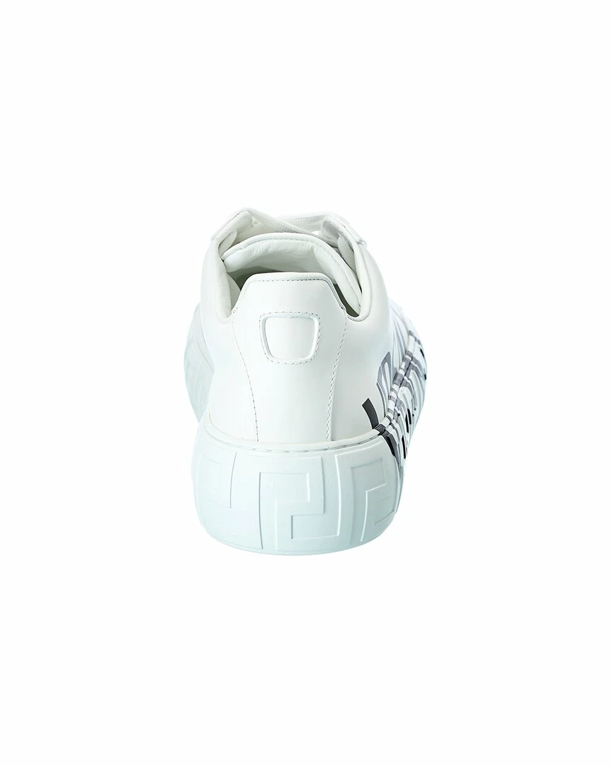 - Greca Logo Leather Sneaker In White Leather With Logo Print