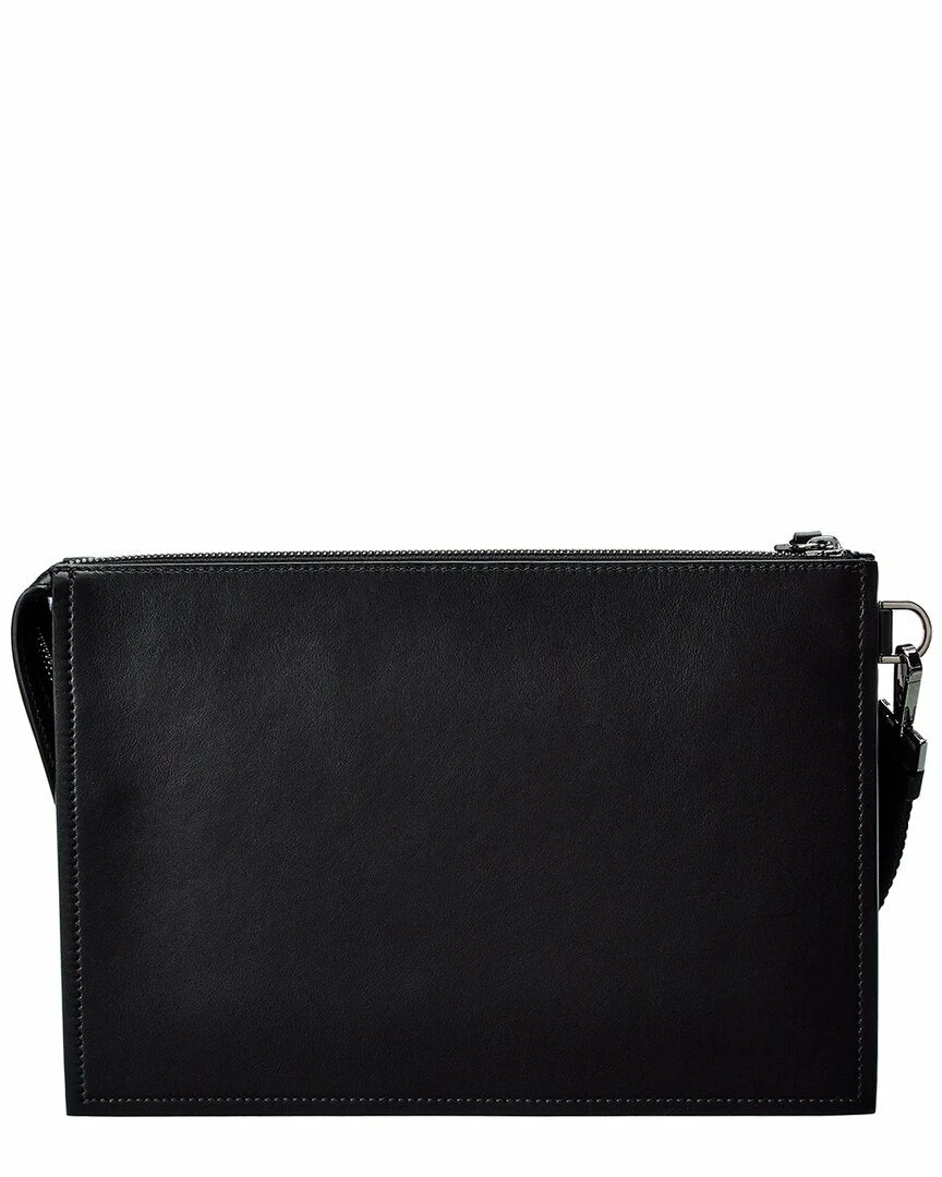 - La Medusa Large Leather Pouch In Black Leather And Silver-Tone Hardware With Medusa Head Logo Accent