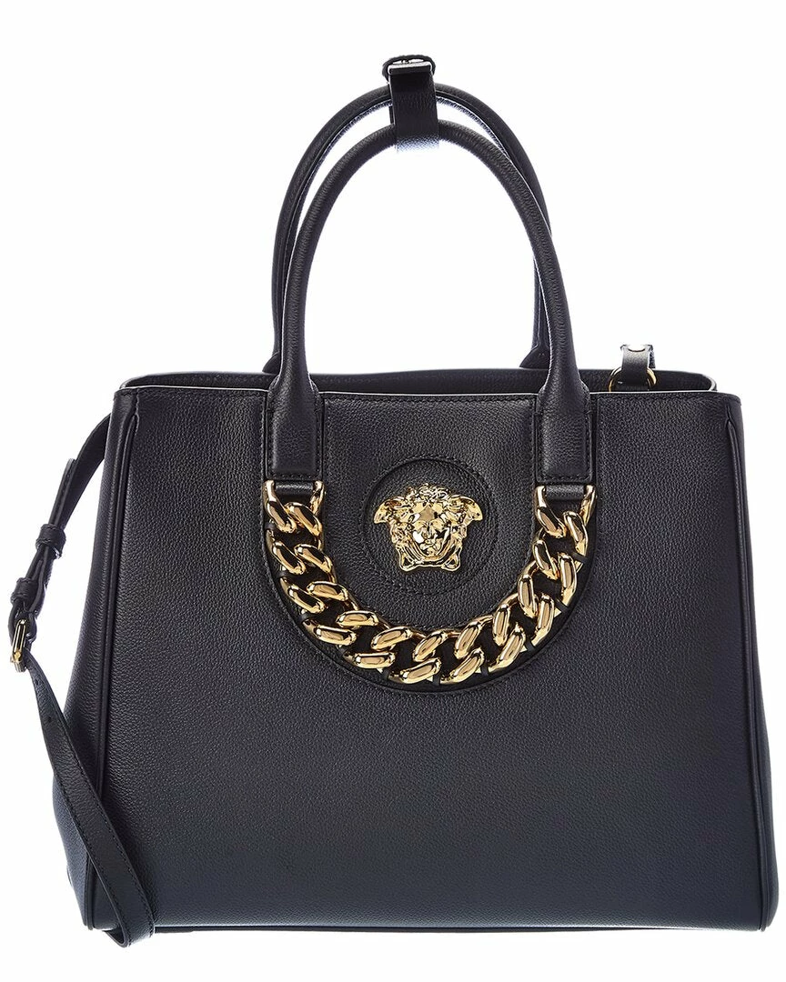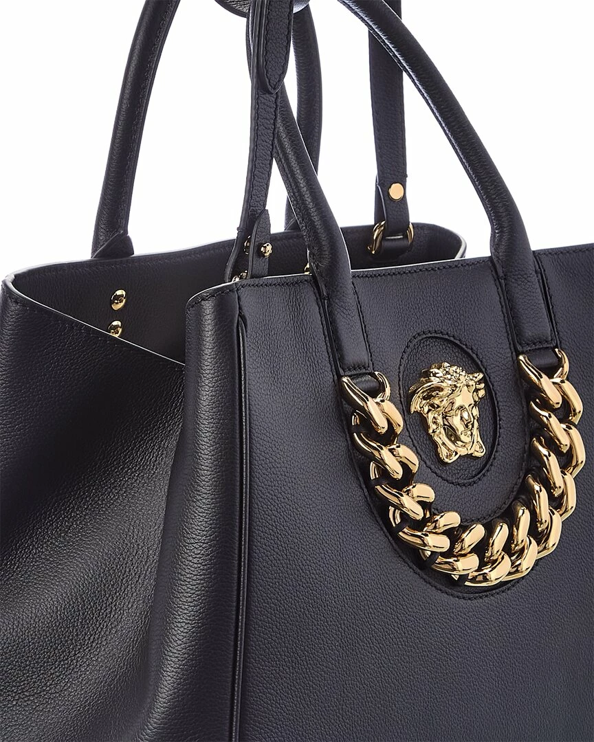 - La Medusa Large Leather Tote In Black Leather With Gold-Tone Hardware, Medusa Head Logo Accent And Chain Accent