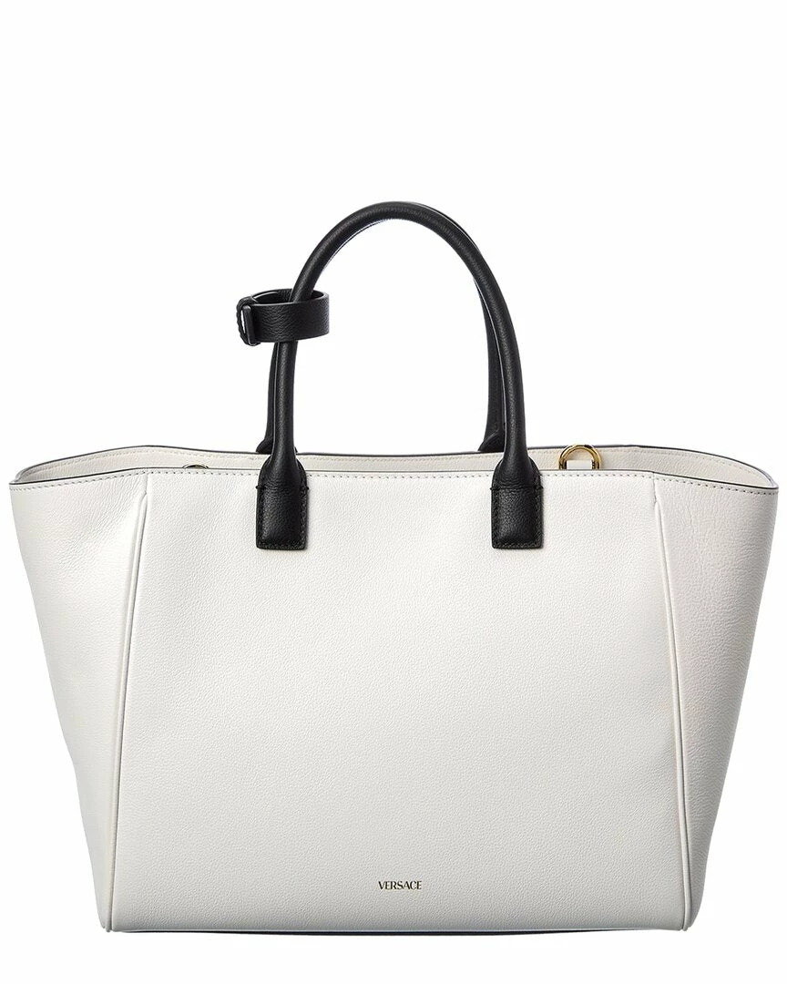 - La Medusa Large Leather Tote In White And Black Leather With Gold-Tone Hardware, Medusa Head Logo Accent And Chain Accent