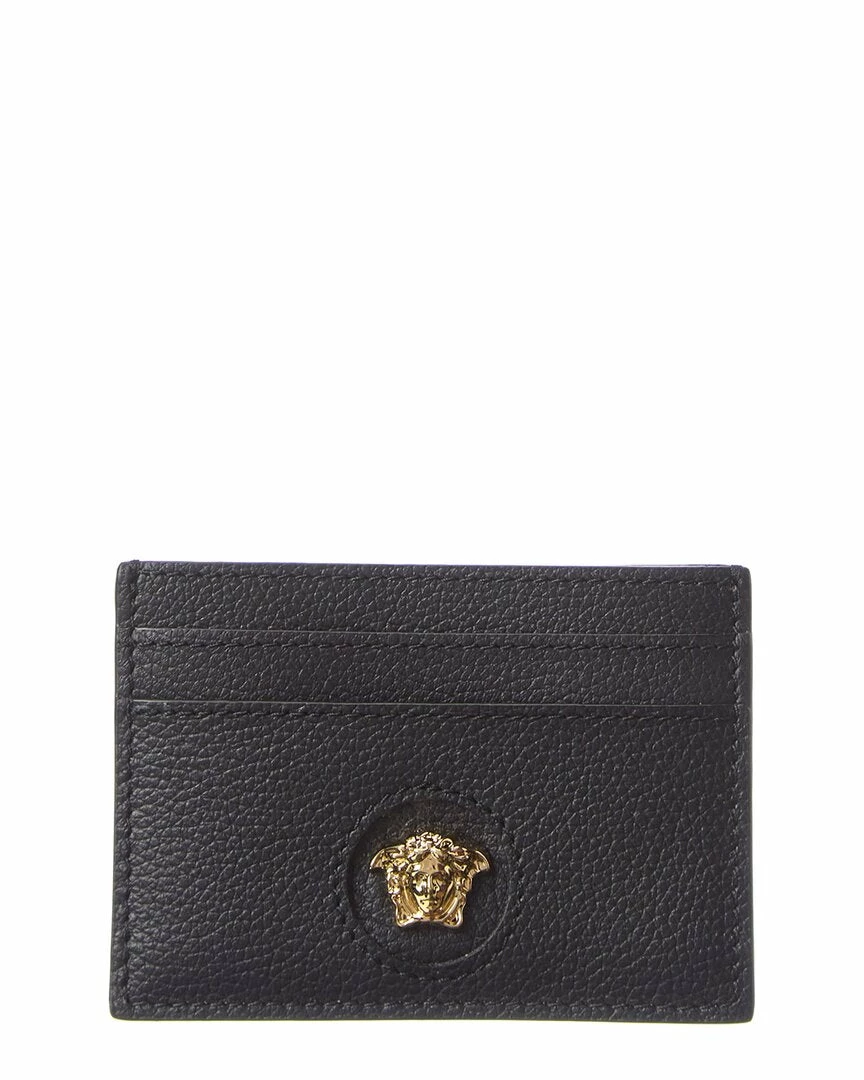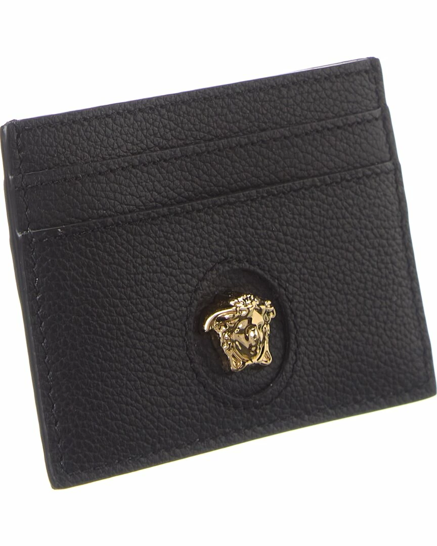 - La Medusa Leather Card Holder In Black Leather With Medusa Head Logo Accent And Card Slots