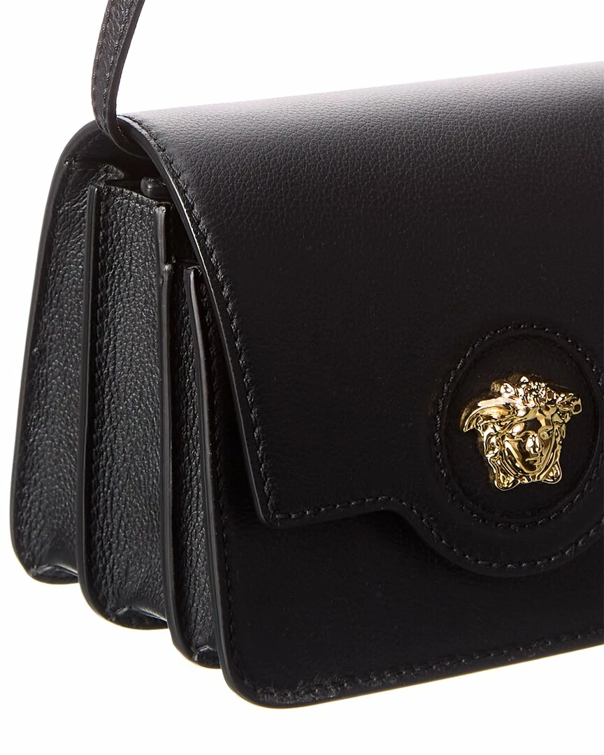 - La Medusa Leather Shoulder Bag In Black Leather With Gold-Tone Hardware And Medusa Head Logo Accent