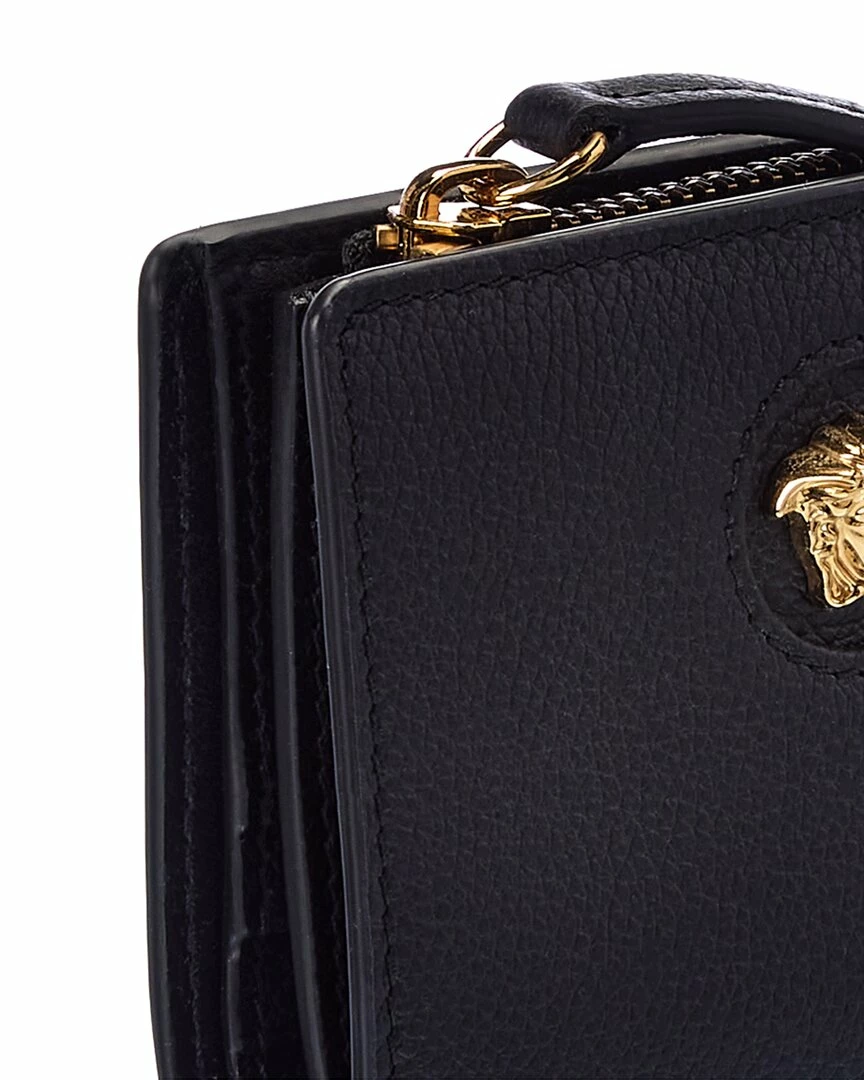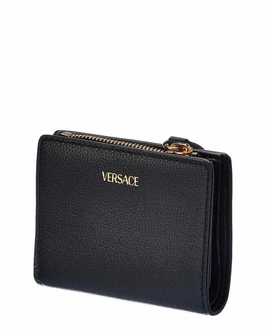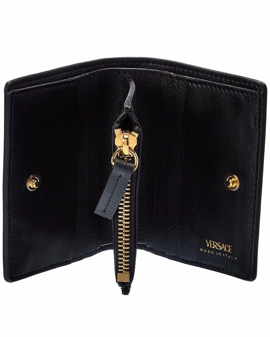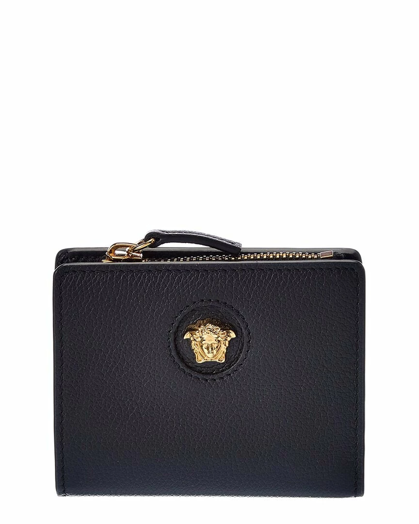 - La Medusa Leather Wallet In Black Leather And Gold-Tone Hardware With Medusa Head Logo Accent