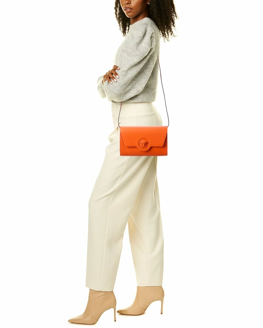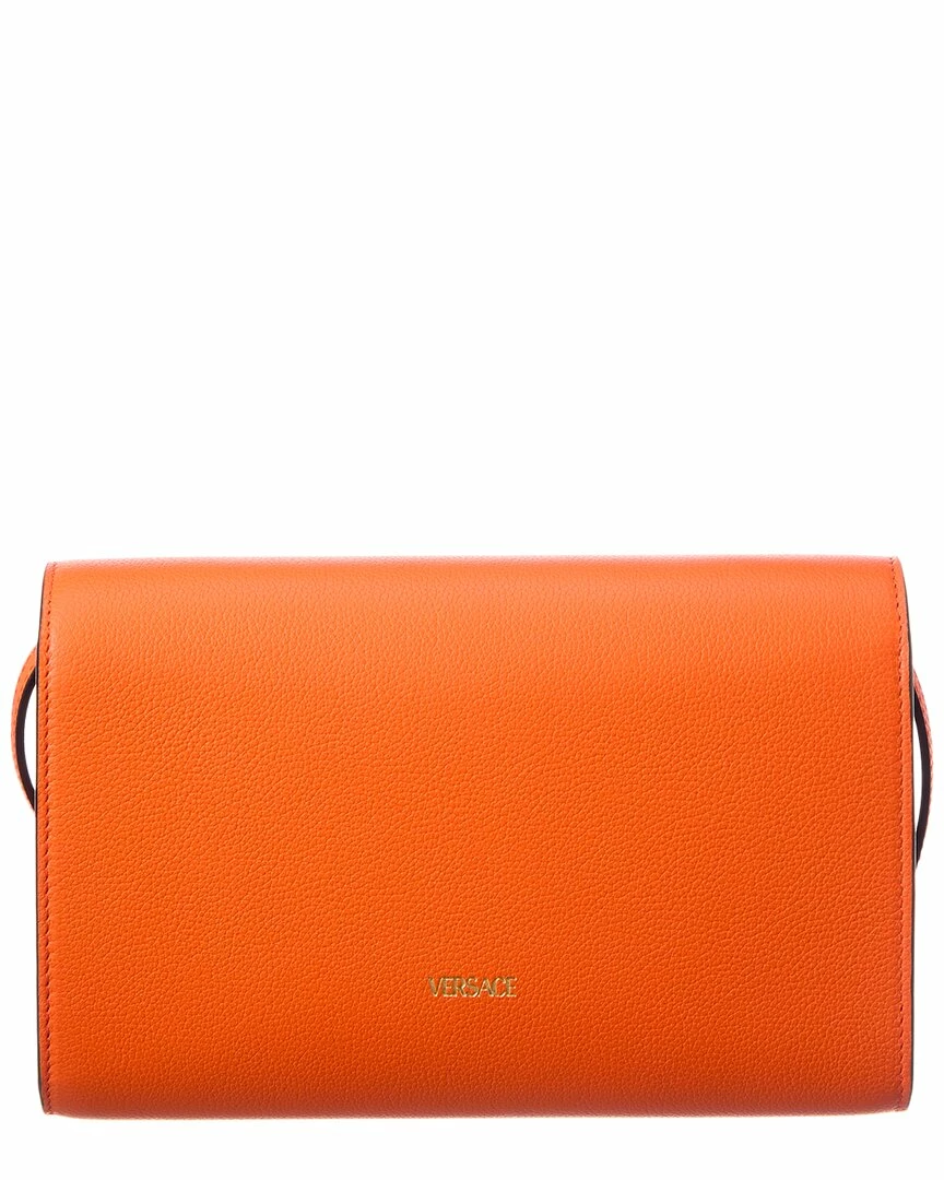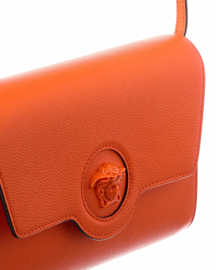 - La Medusa Long Leather Shoulder Bag In Orange Leather And Gold-Tone Hardware With Medusa Head Logo Accent