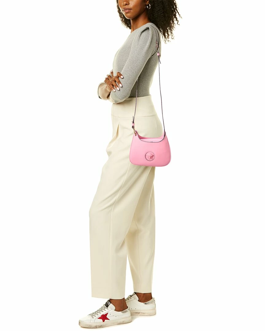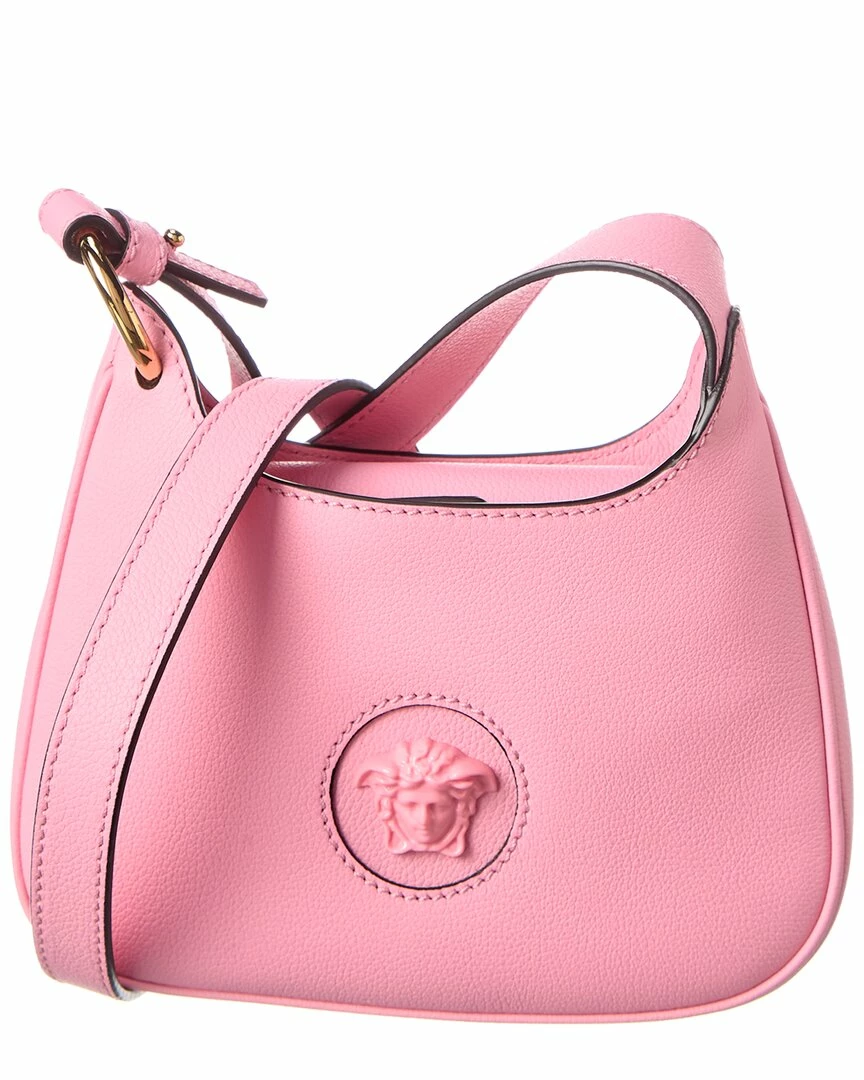 - La Medusa Small Leather Hobo Bag In Pink Leather With Gold-Tone Hardware And Medusa Head Logo Accent