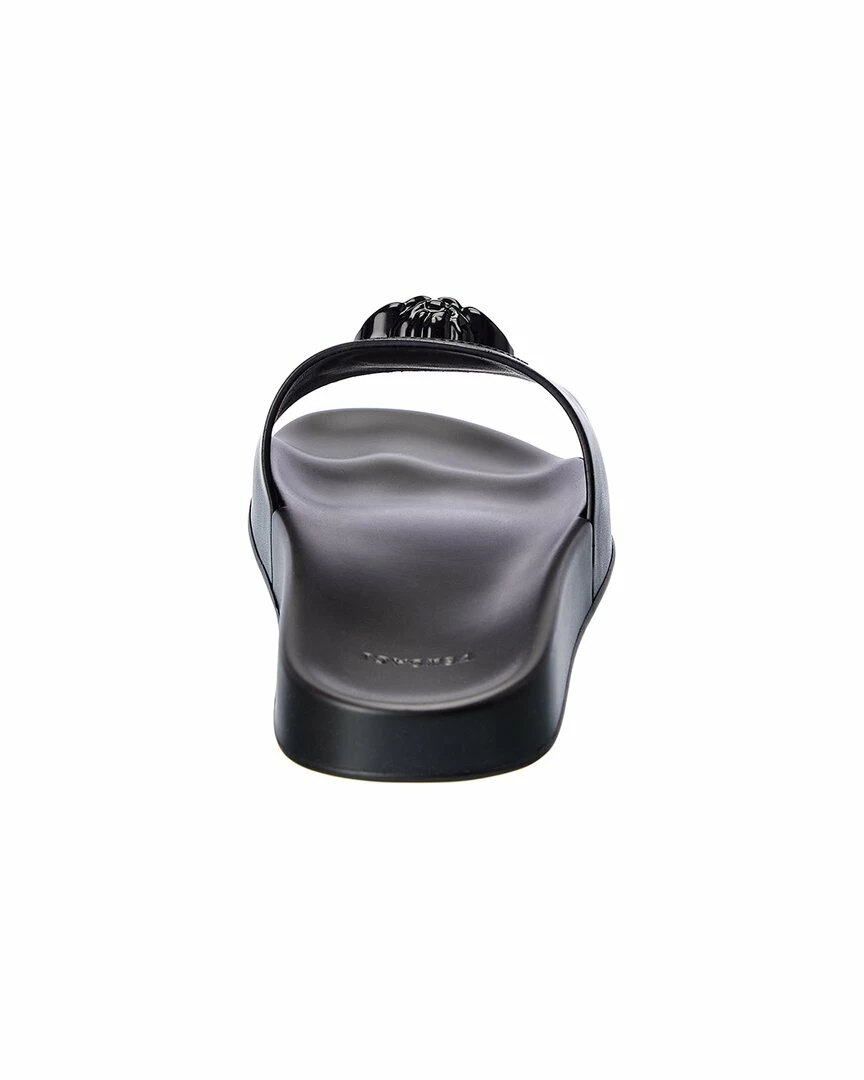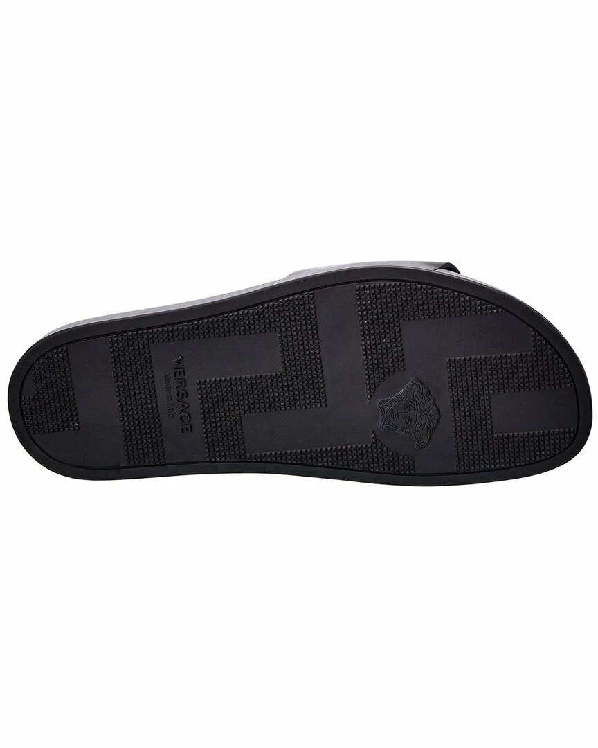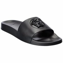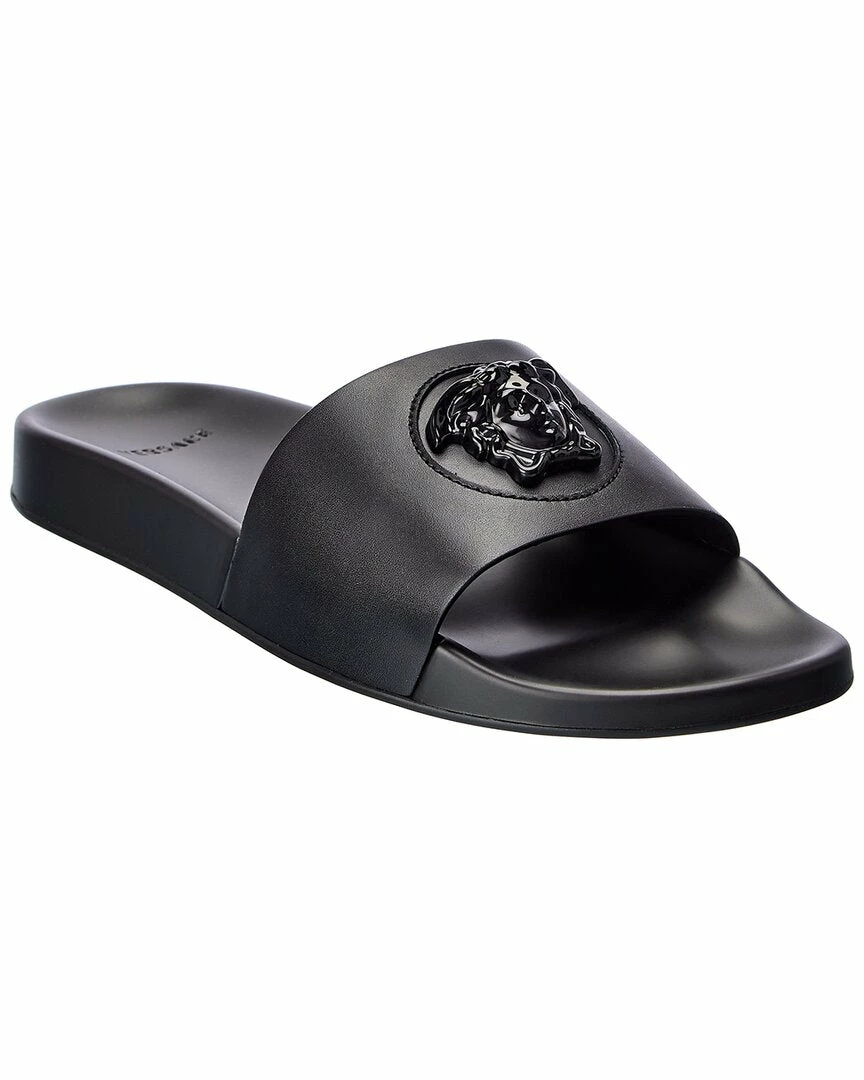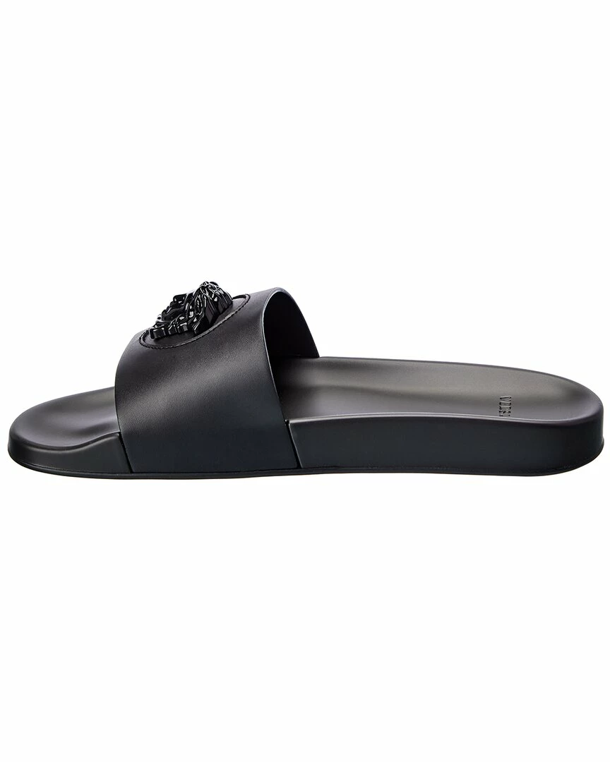 - Leather Slide In Black Leather With Medusa Head Logo Accent