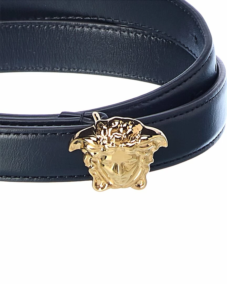 - Medusa Buckle Leather Belt In Black Leather With Gold-Tone Hardware, Medusa Head Logo Buckle And Pin Buckle Closure