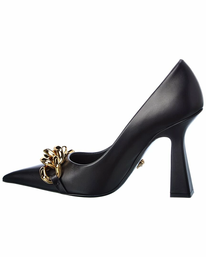 - Medusa Chain Leather Pump In Black Leather And Gold-Tone Hardware With Chain Detail