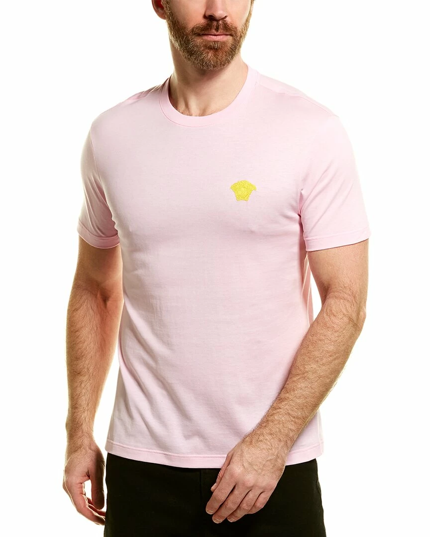 - Medusa T-Shirt In Pink With Crewneck And Embroidered Logo Accent
