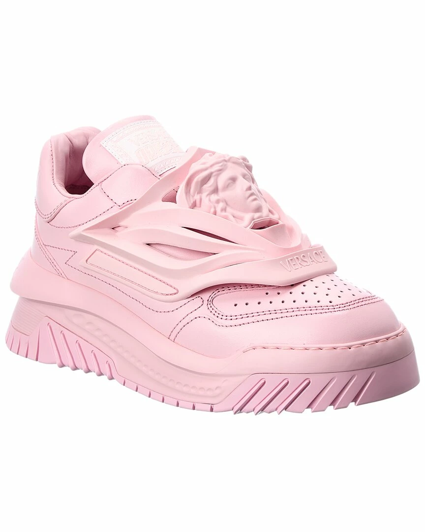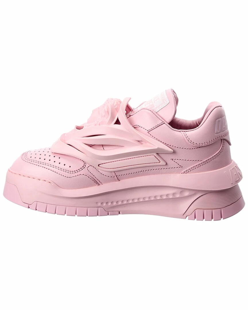 - Odissea Leather Sneaker In Pink Leather With 3D Rubber Medusa Head Logo Accent