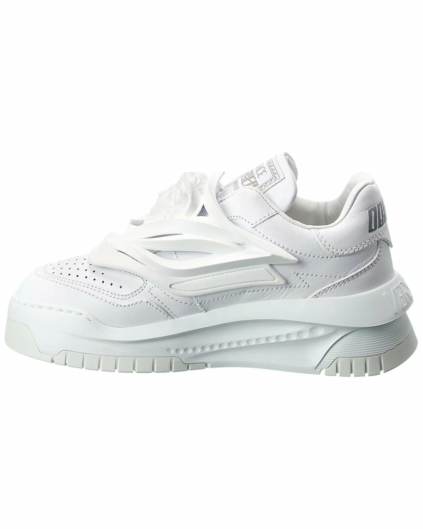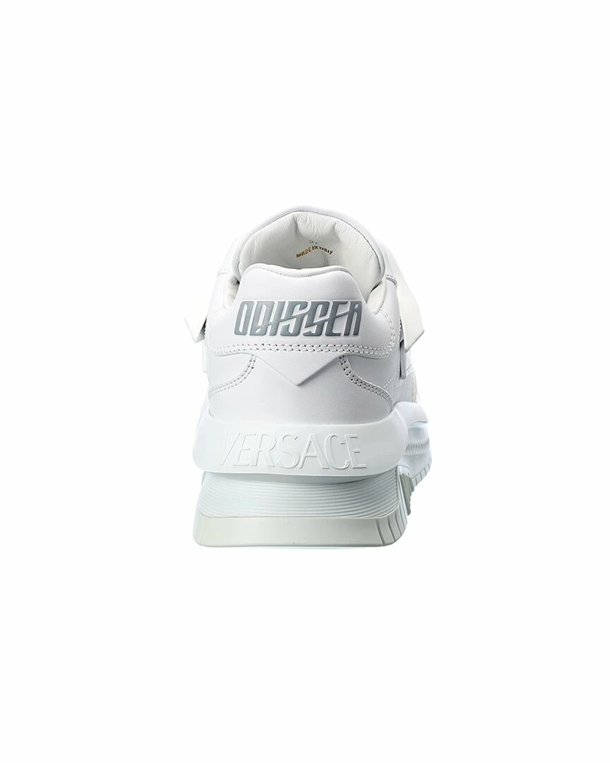 - Odissea Leather Sneaker In White Leather With 3D Rubber Medusa Head Logo Accent