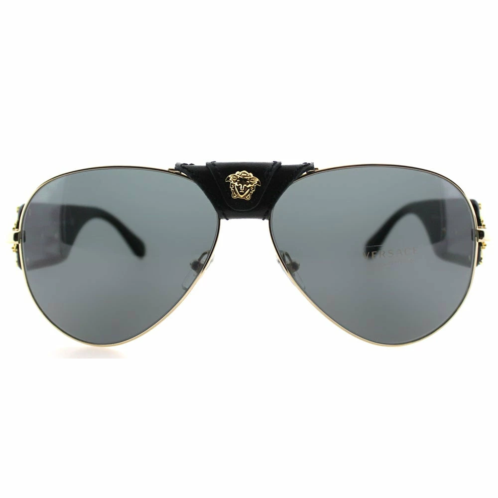 Versace VE 2150Q 100287 Womens Gold Grey Lens Sunglasses Frame Color – Gold Frame Style – Aviator Frame Material – Plastic Lens Color – Grey Lens Protection – UV Protected Includes – Versace box, case, cloth and paperwork *may vary from picture Size – Lens 62 mm x bridge 14 mm x arms 140 mm