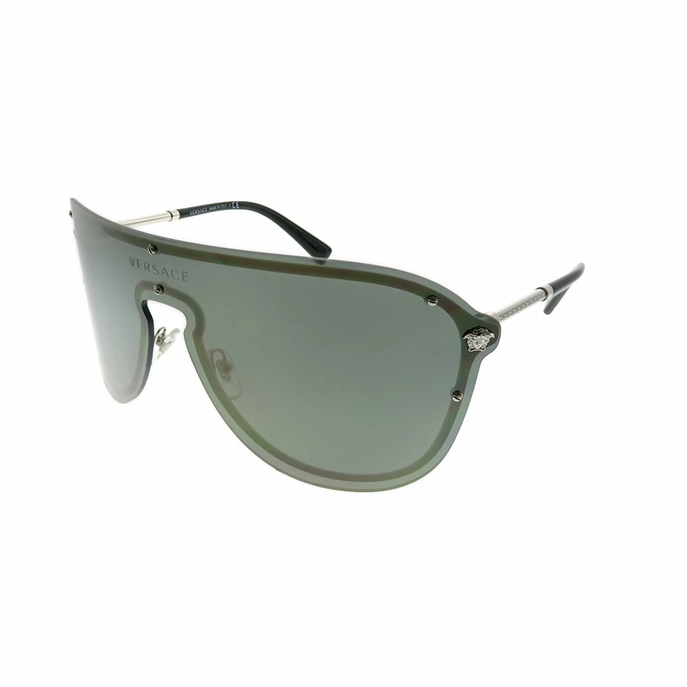 Versace VE 2180 10005A Unisex Silver Gold Mirror Lens Sunglasses Frame Color – Silver Frame Style – Shield Frame Material – Metal Lens Color – Gold Mirror Lens Protection – UV Protected Includes – Versace box, case, cloth and paperwork *may vary from picture Size – Lens 44 mm x bridge 144 mm x arms 125 mm