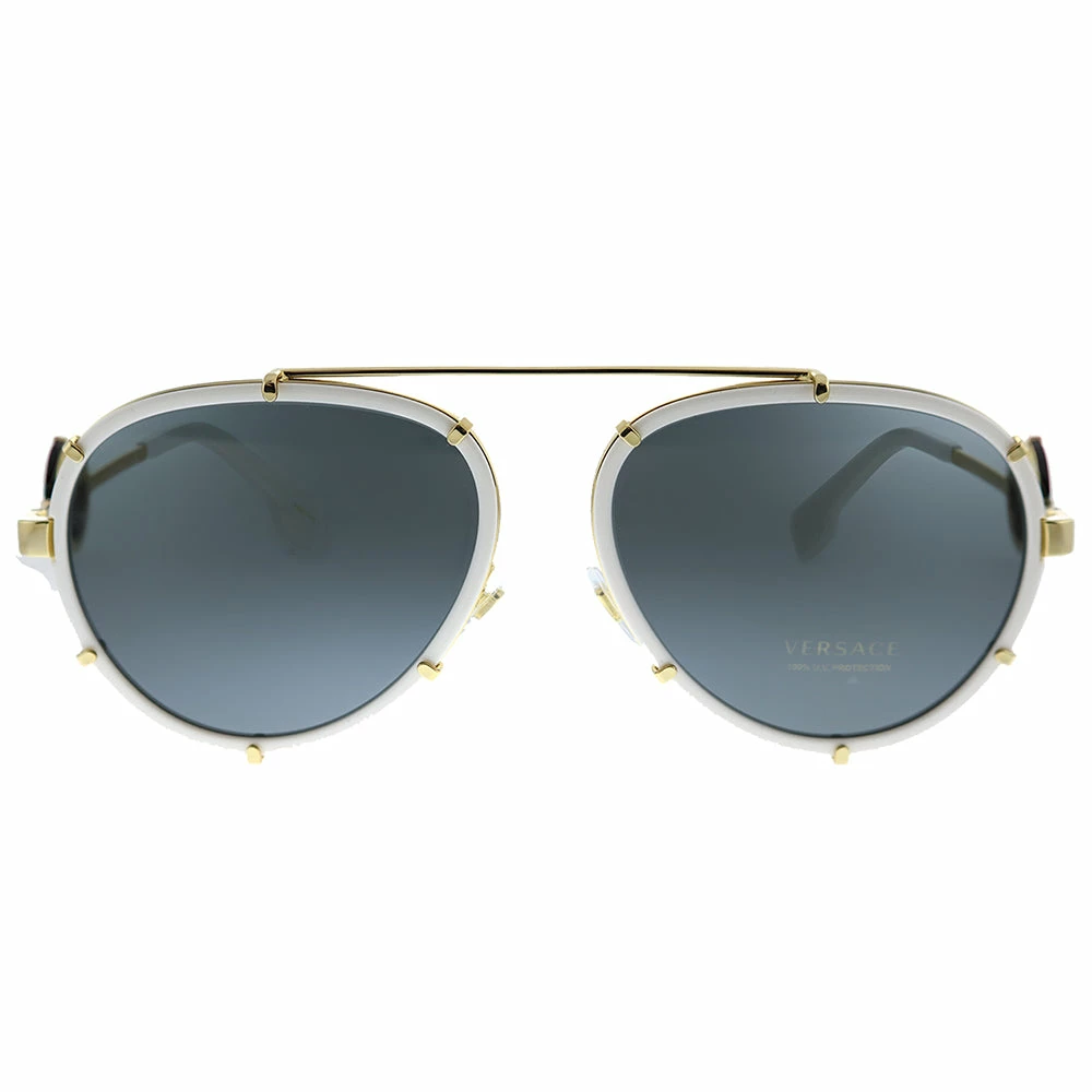 Versace VE 2232 147187 Womens White Grey Lens Sunglasses Frame Color – White Frame Style – Aviator Frame Material – Metal Lens Color – Grey Lens Protection – UV Protected Includes – Versace box, case, cloth and paperwork *may vary from picture Size – Lens 61 mm x bridge 18 mm x arms 145 mm