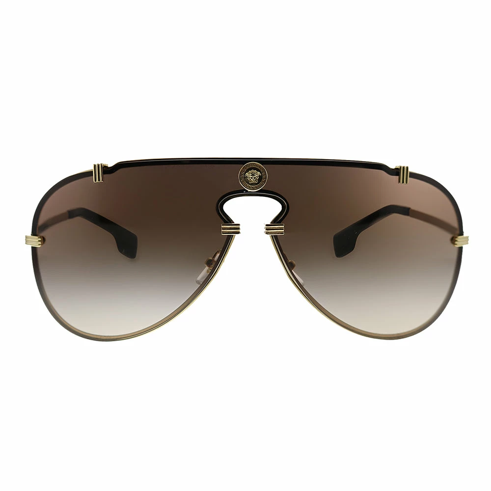 Versace VE 2243 100213 Unisex Gold Brown Gradient Lens Sunglasses Frame Color – Gold Frame Style – Aviator Frame Material – Metal Lens Color – Brown Gradient Lens Protection – UV Protected Includes – Versace box, case, cloth and paperwork *may vary from picture Size – Lens 43 mm x bridge 143 mm x arms 140 mm
